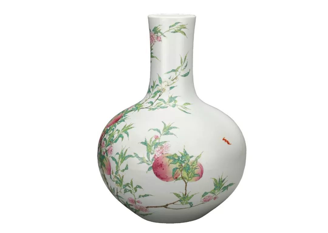 清雍正 粉彩八桃图天球瓶
