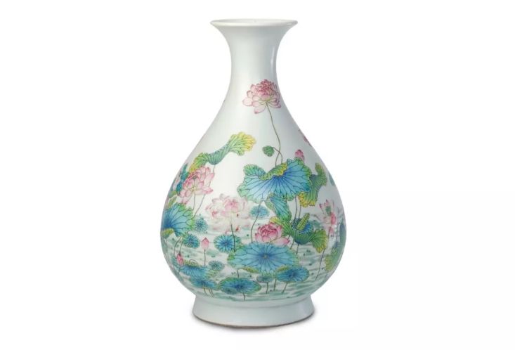 清雍正 粉彩荷塘图玉壶春瓶