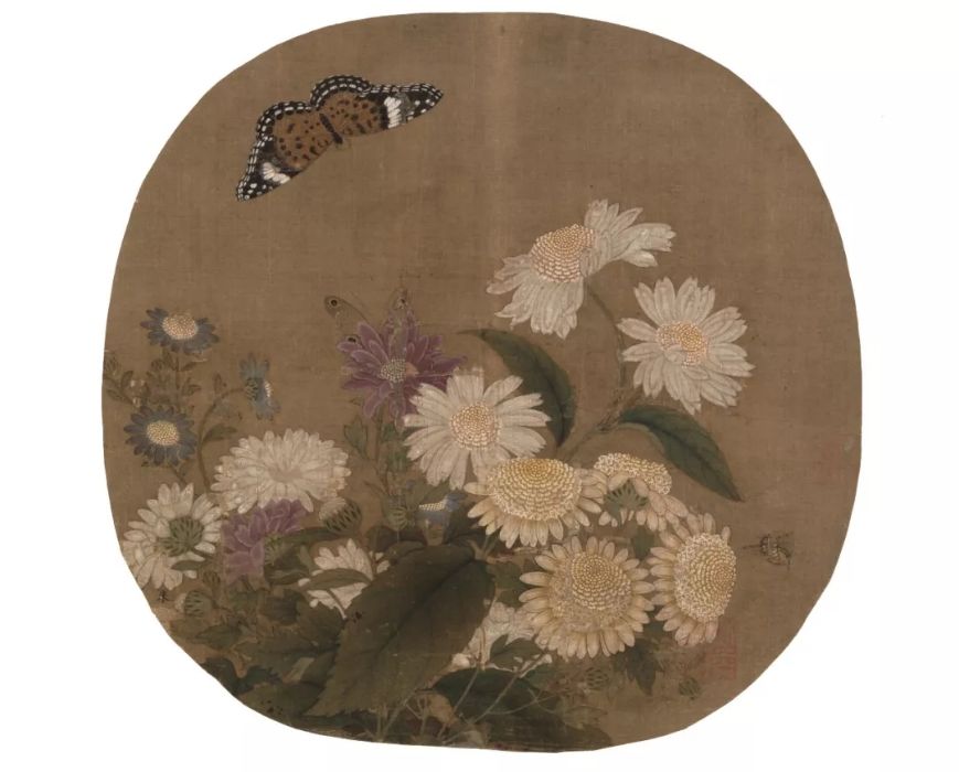 南宋 朱绍宗 菊丛飞蝶图页