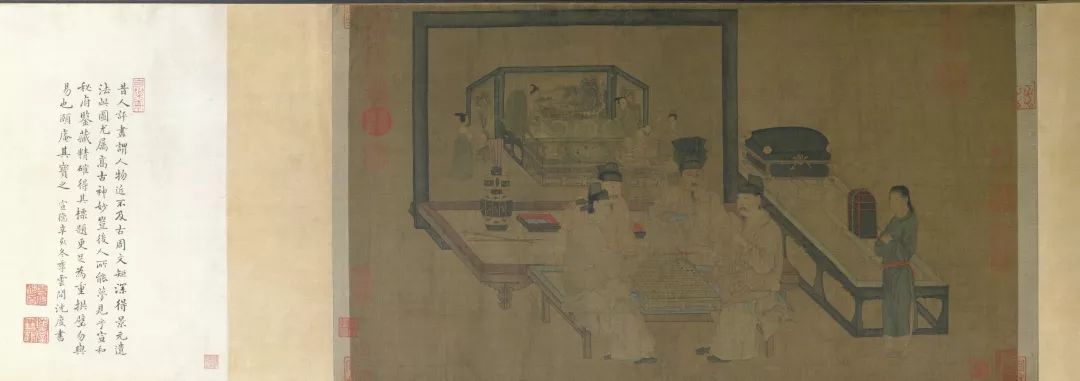 据考证,《重屏会棋图》最初是装裱在一扇独立的屏风上的,宋徽宗将其重新装裱为卷轴,显然,最初的屏风之外就是第四重空间了。听起来是不是很像烧脑的《盗梦空间》?