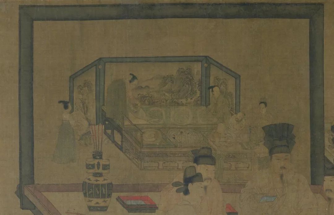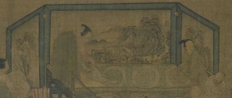 《重屏会棋图》中山水屏风