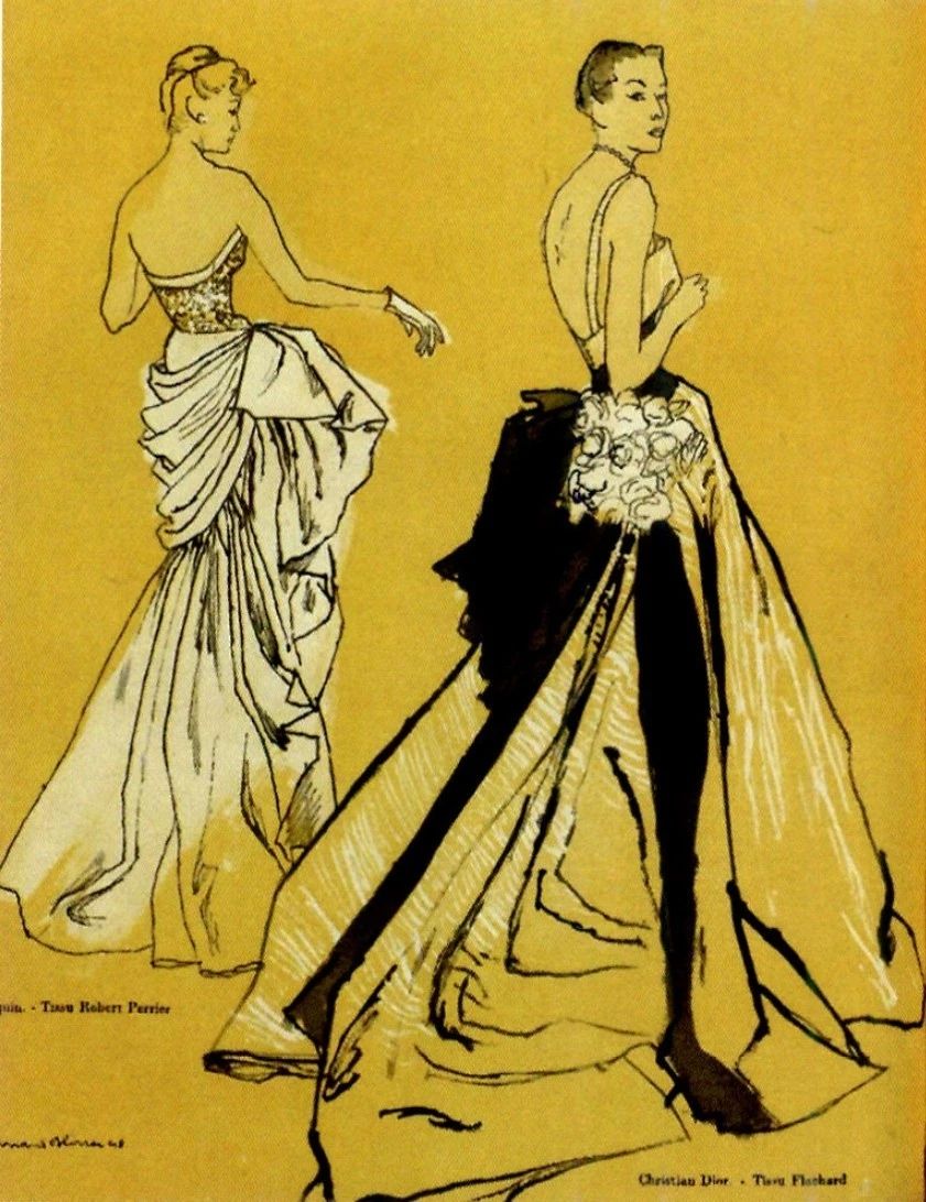迪奥先生曾在其自传《迪奥与我》中写道:“一个黄金时代似乎要来临了。战争已经结束,无人能够预见未来。我用奢侈的材料,笨重的丝绒与锦缎又有什么关系?当内心是雀跃的,即使面料沉重,身体也不会感到负担。”