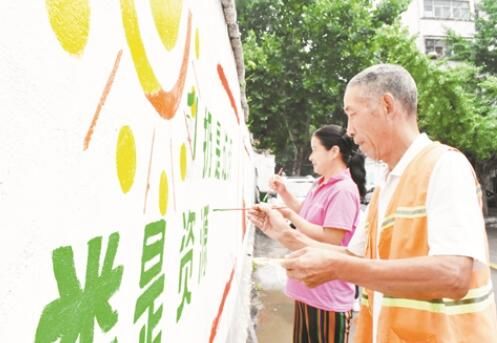 贾汪区老矿街道位于贾汪区北部,属于老煤矿基地,当地正处于转型发展实践之中,非常注重美丽乡村、文明乡村建设。近日,江苏师大美术学院与机电学院的学子在当地开展了“助力乡村振兴 共绘美丽家园”涂鸦活动。原本裸露泛黄的外墙经过精心绘制,摇身一变成了美丽的文化墙,并书写上了“乱扔是垃圾,分类是资源”“美丽新时代”等文明标语;原本陈旧的窨井盖也被涂鸦成低碳环保主题的彩图,令人眼前一亮。一些当地群众被大学生志愿者的涂鸦吸引,也拿起画笔参与墙绘。