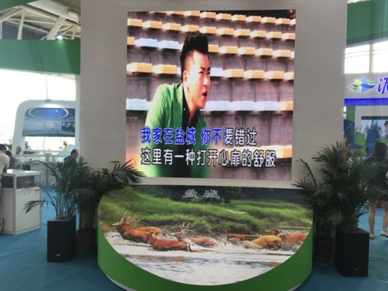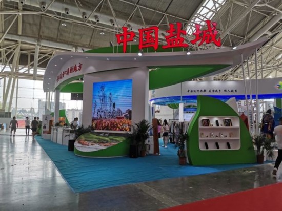 此届版博会汇聚了长三角各省、国际展区及全省各兄弟市,盐城馆采用红、绿、蓝三色相结合,寓意铁军、湿地、海洋。设置4个展区:城市形象区、文创展区、非遗展区和工艺品展区。通过原创音乐MV、红色旅游、湿地自然遗产等城市宣传片和摄影、文字、文创设计、非遗木雕传承及玻璃工艺产品等版权作品多形式、全方位展示盐城地域特色,向省内外参展人群递交盐城的城市名片。