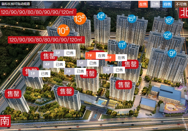 项目预计9月加推10、13栋,两梯四户,两个单元,共27层高,共计432套房,户型面积约80—120㎡,精装修交付。10、13号楼由西到东户型分布如下:120、90、90、80、80、90、90、120㎡。