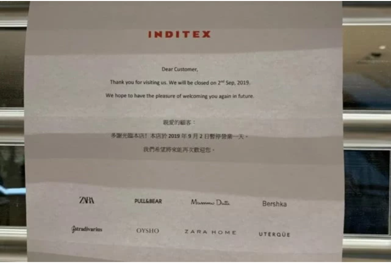 Inditex西班牙总部新闻办公室对环球时报-环球网这样解释“罢市告示”一事:2日,因香港地铁中断等交通问题,部分位于抗议活动较集中区域的ZARA门店在正常的开店时间到来时尚未有足够员工抵达门店,“鉴于他们不知道什么时候才能开门,什么时候才会有足量的人手,所以个别店铺贴出通知,将这一情况告知客人。后来等抵达员工数量较多后,所有的门店最终均开店营业。”