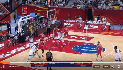 在首节还剩4分23秒时,马赫穆托格鲁突破上篮,这个时候塔图姆从篮网下方往上拨球,虽然将球拨出去了,但是被裁判吹罚干扰球。从这一球可以看出,至少塔图姆还不熟悉国际篮联的规则。