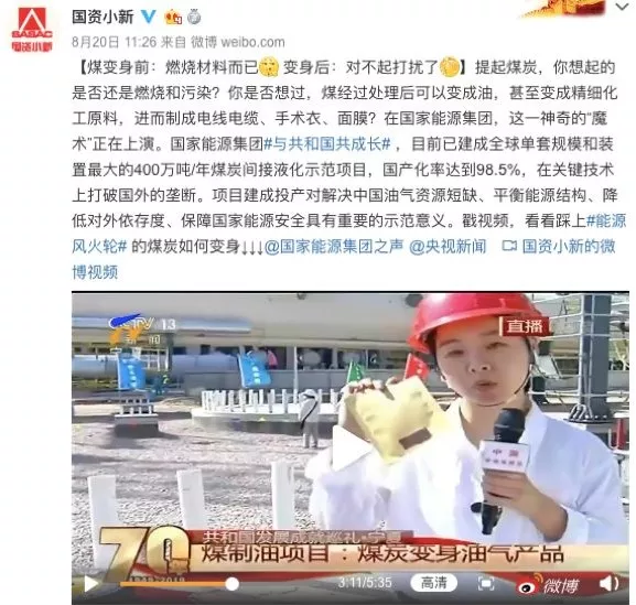 一块普普通通的煤除了能燃烧以外还能干啥?8月20日,小新在微博上发了这样一条微博,介绍煤的“变身”:除了燃烧以外,煤还能制成油,以及一些精细化工原料,这其中就包括面膜的原材料。
