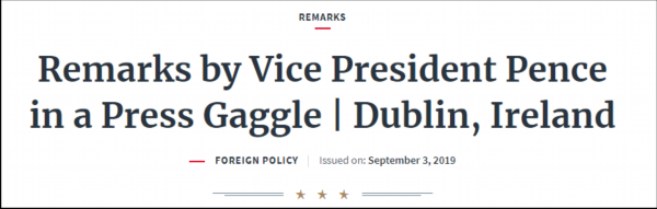 彭斯在都柏林召开记者会,图自美国白宫网站