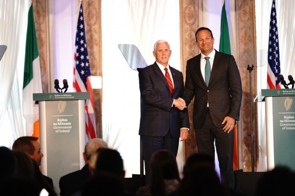 美国副总统周二与爱尔兰总理利奥·瓦拉德卡尔(Leo Varadkar)在爱尔兰首都都柏林举行会谈,随后召开联合新闻发布会。