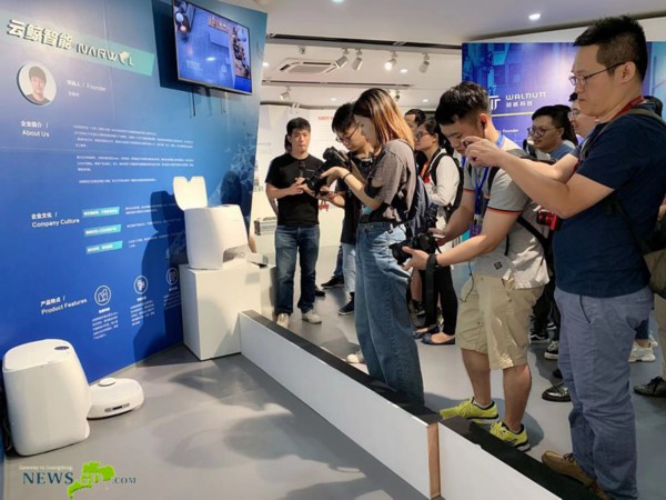 在东莞松山湖国际机器人产业基地,云鲸的拖地机器人吸引了采访团的目光。