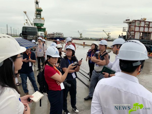 采访团来到东莞港码头。