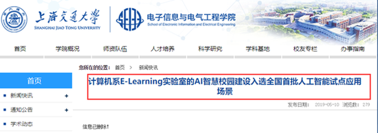 根据上海交通大学网站上的信息显示,今年五月该实验室的AI智慧校园建设是首批入选全国人工智能试点应用场景。