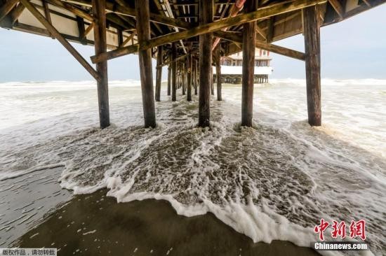地时间2019年9月3日,美国戴托纳海滩,飓风“多里安”迫近,海边风浪不断。美国国家飓风中心透露,飓风“多里安”将在2日晚些时候逼近佛罗里达东海岸,一直持续到星期三(4日)晚上,然后在星期三晚上和星期四(5日)逼近美国乔治亚州和南卡罗来纳州海岸。
