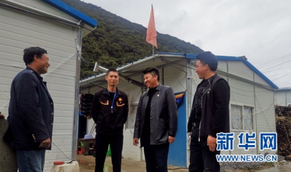 朱清与波罗乡党委书记四郎旺修在修扎集中安置点和百姓交流。杨晓波摄
