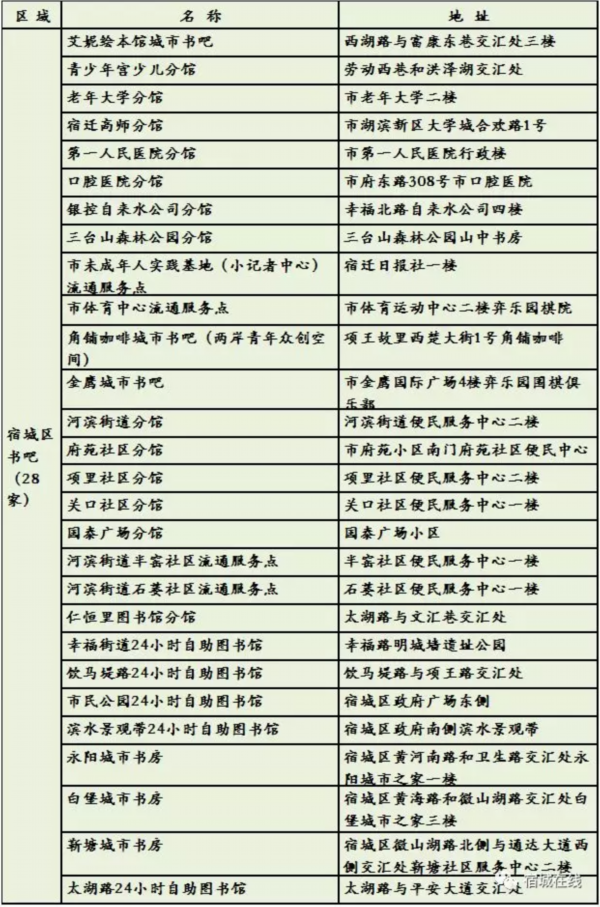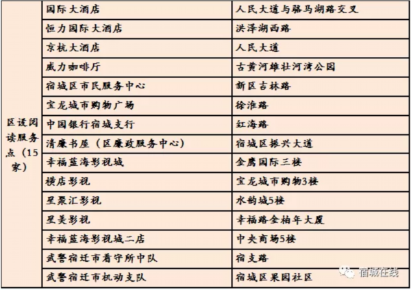 宿城区城市书吧及区设阅读服务点