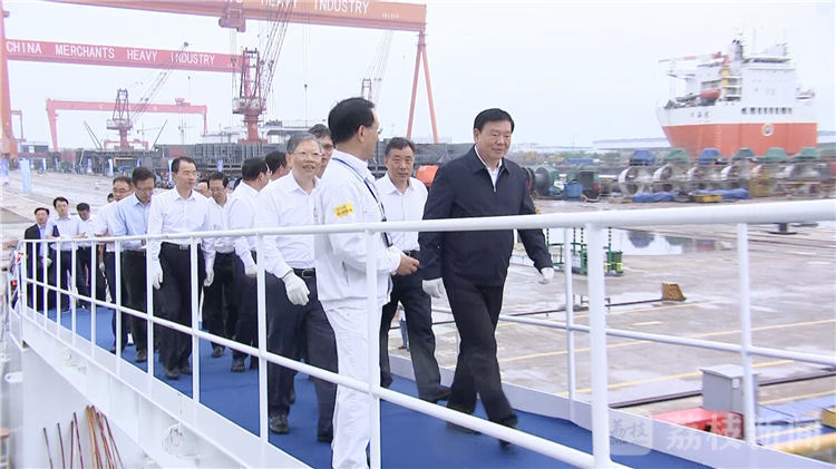由招商局重工(江苏)有限公司和招商局邮轮制造有限公司共同组成的招商工业海门基地,实施高端海工和邮轮建造“双轮驱动”,主攻高端海洋工程装备及船舶建造,着力打造中国邮轮制造品牌,承接了不少极地邮轮和中型邮轮订单。娄勤俭听取了海门基地在产品研发设计、智能制造等方面的情况介绍后,对他们以创新提升制造水平、增强市场竞争力给予充分肯定,希望招商工业海门基地充分发挥央企优势,利用江苏制造业基础和创新资源,发展集船舶设计、建造、修理、拆解、配套、服务于一体的产业体系,特别是要在市场前瞻性船型、关键海工设备等关键技术方面进行重点攻关,构筑核心竞争力。海门基地建造的中国首艘极地探险邮轮即将交付,娄勤俭高兴地登上邮轮考察,详细询问邮轮的技术标准、优势特色、商业前景等情况,勉励企业把邮轮产品做大做优做强。娄勤俭还主动询问公司在江苏发展有什么需要解决的问题,要求省有关方面和当地党委政府更加积极主动地提供精准服务,为企业创造更好政策支撑和更优发展环境。