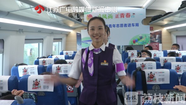 今天上午,在上海开往南京的G7010次列车上,5车厢的乘客们偶遇了一群笑容甜美的志愿者,她们用活泼生动的自创歌舞,在列车上给乘客们宣传了垃圾分类的新倡议。