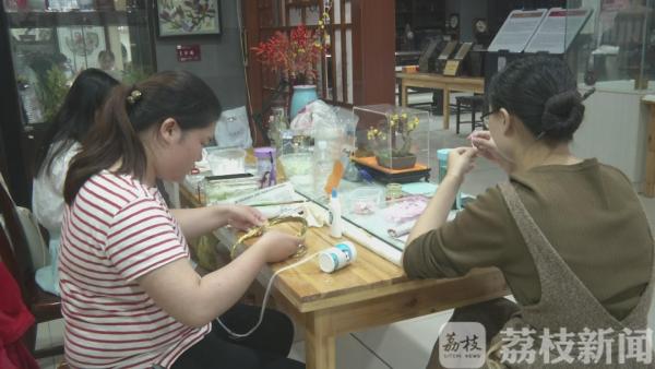 扬州通草花制作历史悠久,在民间植根尤深。这是以通草为原料,经漂白、染色、捏瓣、粘花、做叶子、栽盆等多道工艺流程,制作而成的一种特色工艺品。眼下,六位学徒正在专攻这门传统技艺。