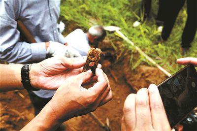 据介绍,“吕贵仁章”放在一具较为完整的遗骸旁边,遗骸头部侧卧、面朝东。在遗骸附近,还有帽徽、扣子和皮带卡环。