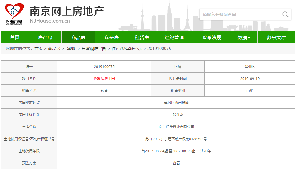 9月6日,从南京市网上房地产获悉,位于河西南的华润置地鱼嘴润府已经申领销许,即将报名,拟9月10日开盘,销许均价约为39799元/m²。