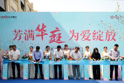 嘉宾致辞结束,随着音乐响起,一队身着婚纱礼服的美女模特登上与主舞台相连的T台上,为现场的来宾们表演了一场美轮美奂的婚纱T台秀, 随后在现场来宾的共同见证下,现场主持人邀请红豆集团总裁特别助理、国际公司副总经理包军先生,红豆集团国际公司副总经理闵杰先生,红豆集团南京公司总经理房宽齐先生,红豆集团国际公司品牌部部长严晓燕女士、红豆·香江华庭项目合作方潘光林先生,南京地产人士孙良先生共六位嘉宾一同上台剪彩。剪彩仪式完成后,红豆·香江华庭样板示范区正式对外公开。随着售楼处大门的徐徐开启,现场数百名来宾涌入红豆·香江华庭样板示范区内,争先一睹其“芳容”。