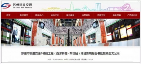 据苏州轨道交通集团消息,《苏州市轨道交通8号线工程(西津桥站—车坊站)环境影响报告书》于近日获得批复!