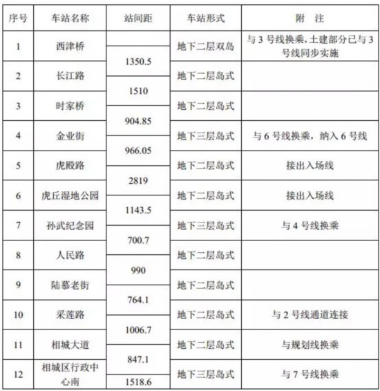 与在建线路换乘有8个站点,包括西津桥、唐庄、苏州园区火车站(与在建3号线换乘);车斜路站(与在建5号线换乘)、金业街、中塘公园站(与在建6号线换乘)、相城大道(与远期规划线路换乘)、相城区行政中心南站(与在建7号线换乘)。