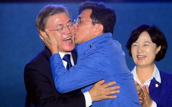 文在寅当选总统后,安熙正兴奋庆祝