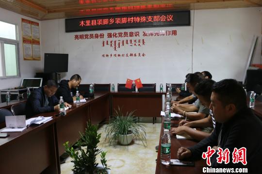 木里县项脚乡项脚村村委会特殊支部会议召开。长兴宣传部提供