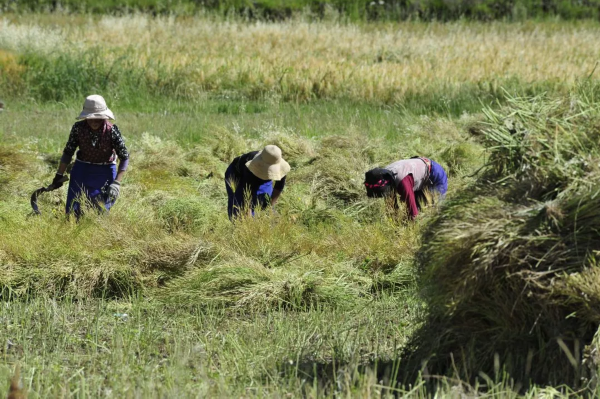 记者驱车前往墨竹工卡县唐加乡,天高气爽、碧空万里,是高原初秋的样子。一路上大家的目光被大片金黄的田野牢牢吸引住。