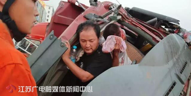 9月8日,句容发生一起3车相撞事故,一名司机受伤后被卡在驾驶室内。