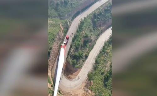 背着巨大桨叶的卡车,在山路中需经历20多个弯道。