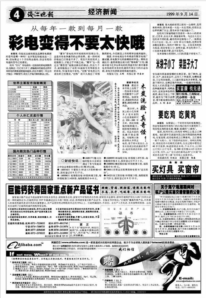 1999年9月14日,阿里巴巴在《钱江晚报》上发了第一条招聘广告。上面的广告语是: If not now,when?If not me,who?此时此刻,非我莫属。后来,这句话成了阿里巴巴的第一句土话。它体现了阿里人对使命的信念和“舍我其谁”的担当。