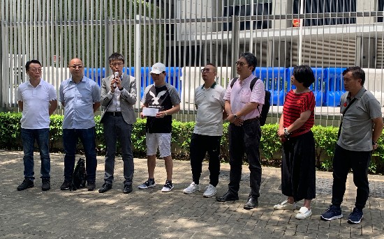 9月10日上午,多名旅游从业者在香港特区政府总部门口诵读请愿书。