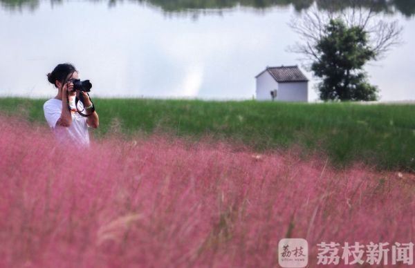 今天(9月10日)上午,记者来到这里:远远的一片粉红色花海映入眼帘。走近了发现,这种花有半人高,柔柔的,如发丝从基部长出,长满一枝又一枝,连成一片,随风摇曳,像是粉红色的梦幻世界。这里的负责人席文官告诉记者:今年他们在芝樱小镇里第一次种植了150亩的粉黛乱子草,在周边地区也是面积比较大的,在种植时不仅专门设计了拍照点,还有蜿蜒小路穿行其间,供游客观赏!