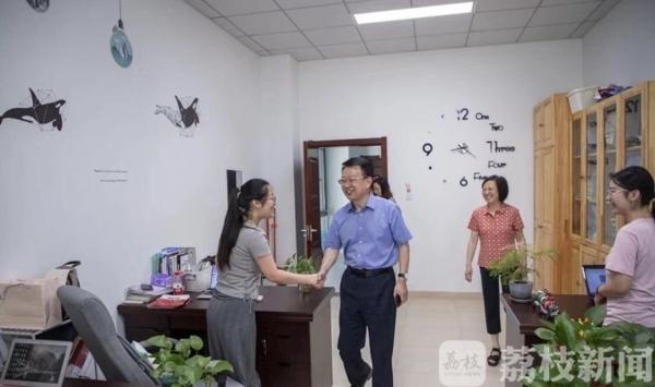 一大早,校长穆耕森和书记肖立荣就分别带队,走访每一个教职员工办公室,代表学校,向老师们致以节日的祝福。