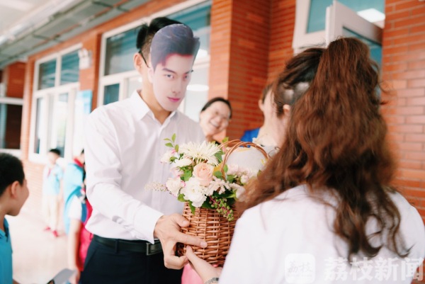 这是二年级12班家委会策划的——让“李现”献花!家委会代表说:孩子一年级给老师送花的时候老师拒绝了,今年家委会就讨论要用什么样的方式才能让老师接受这小小的心意呢?最近,李现大热,家长们觉得,老师不管什么时候给孩子们传递的都是欢乐,那么在教师节这一天,我们就来个cosplay,也给老师一个惊喜吧!