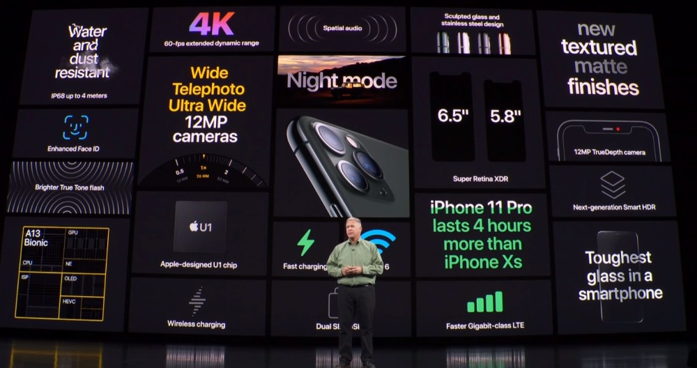 续航方面,iPhone 11 Pro比iPhone XS续航多4个小时,iPhone 11 Pro Max比XS高5小时续航。