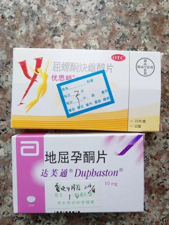 8月底,她联系了萍乡汉和医院的一位医生,医生给朱女士开了些孕期调理的药。从医生开具的处方上看到,这药叫做地屈孕酮片,主要用于解决孕妇孕酮不足的情况,用量为每日两次。可是汉和医院药房工作人员给的却是屈螺酮炔(que)雌醇片。处方和到手的药名都有“屈”和“酮”字,不仔细看还真发现不了哪里不对。