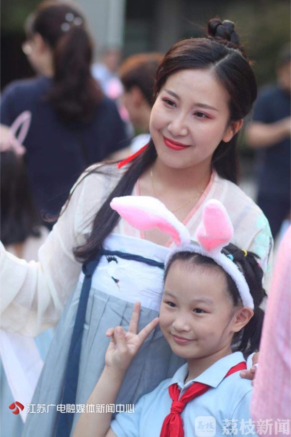 老师们穿上了传统汉服,仿佛穿越到了古代;而同学们则戴上了兔子耳朵,变成了小“玉兔”,给这个特别的夜晚增添了许多乐趣。