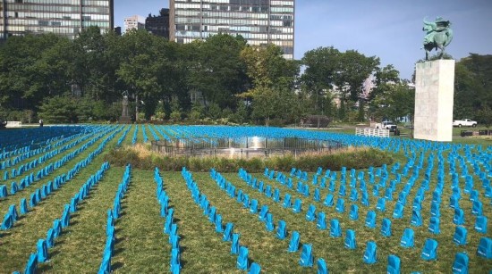 在联合国纽约总部北草坪上,3758只蓝色的书包整齐地排列着,就如同墓地一般。当地时间9月8日,联合国儿童基金会在这里揭幕了这个装置艺术作品。这3758只蓝书包,象征了2018年全球在冲突地区丧生的儿童,每个书包都代表了在无谓冲突中陨灭的幼小生命。