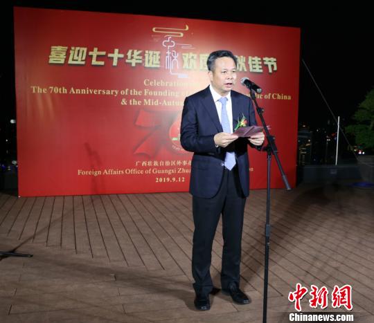 当天,由广西外事办公室主办的2019年“喜迎七十华诞·欢度中秋佳节”联谊活动在广西南宁举行,来自泰国、马来西亚、老挝、柬埔寨、越南、缅甸等东盟国家驻南宁总领事及各总领事馆工作人员、家眷等齐聚一堂,话中秋,叙友谊,谈合作。