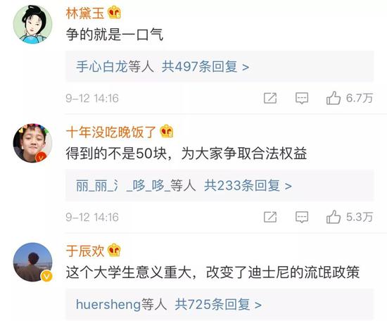 有的网友为较真的王同学点赞,认为她维护了许多消费者的合法权益,“以后家长带孩子去上海迪士尼游玩时,可以省点心了。”