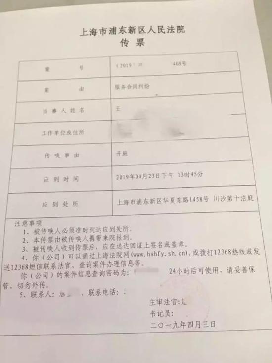 上海浦东法院于2019年3月15日立案受理该案,于4月23日公开开庭审理,审理期间多次组织双方调解。