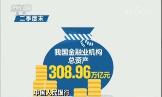 央视网消息:中国人民银行昨天(12日)发布的数据显示,二季度末,我国金融业机构总资产为308.96万亿元,同比增长8.4%。