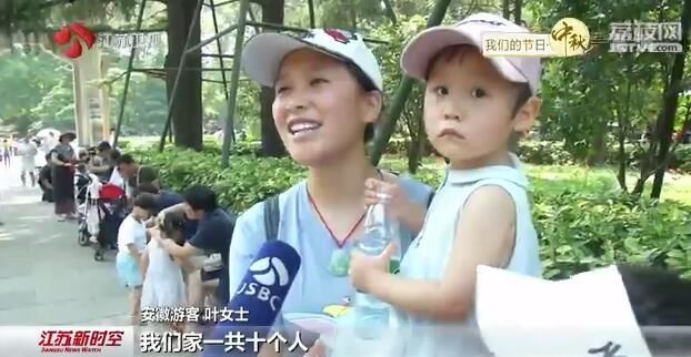 上午十一点钟左右,景区内已经是游人如织。人群中,安徽游客叶女士一大家子人非常显眼,她们一大早就来到了南京,叶女士说,一起出游也是一种团圆。