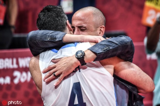 最终比赛结束,阿根廷80:66获得胜利。此时,场边嘉宾看台上一个身穿西装和牛仔裤的人起身走向斯科拉,那就是马努-吉诺比利。他们曾经一同缔造了上一个黄金时代。而马努没能等到这下一个时代的来临,他紧紧用手勾住斯科拉的脖子。他们一个鬓角已白,一个早去掉了那头秀发,斯科拉摸着妖刀的光头。这一刻,他还在坚持,为了他们共同的梦想。
