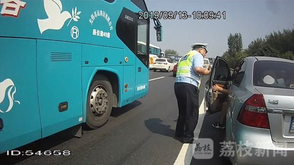 今天(9月13日)上午10时20分左右,江苏扬州市公安局交警支队润扬大桥公安检查站负责人缪鹏带领民警与特勤人员联合执勤时,发现在检查站北卡100多米处的应急车道上,停靠着一辆车牌号为苏LW2**7的轿车,迅速赶过去询问情况。