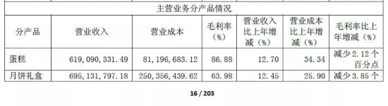 广州酒家和元祖股份去年主营产品收入和毛利率